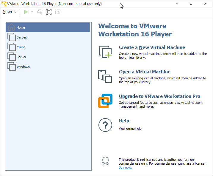 VMware는 유료버전인 VMware Workstation Pro와 비 상업용 무료버전인 VMware Workstation Player가 있습니다. 기능 상으로 세부적으로 디테일한 설정을 할 수 없다는 것 외에는 유료버전과 무료버전의 차이는 크게 없습니다.