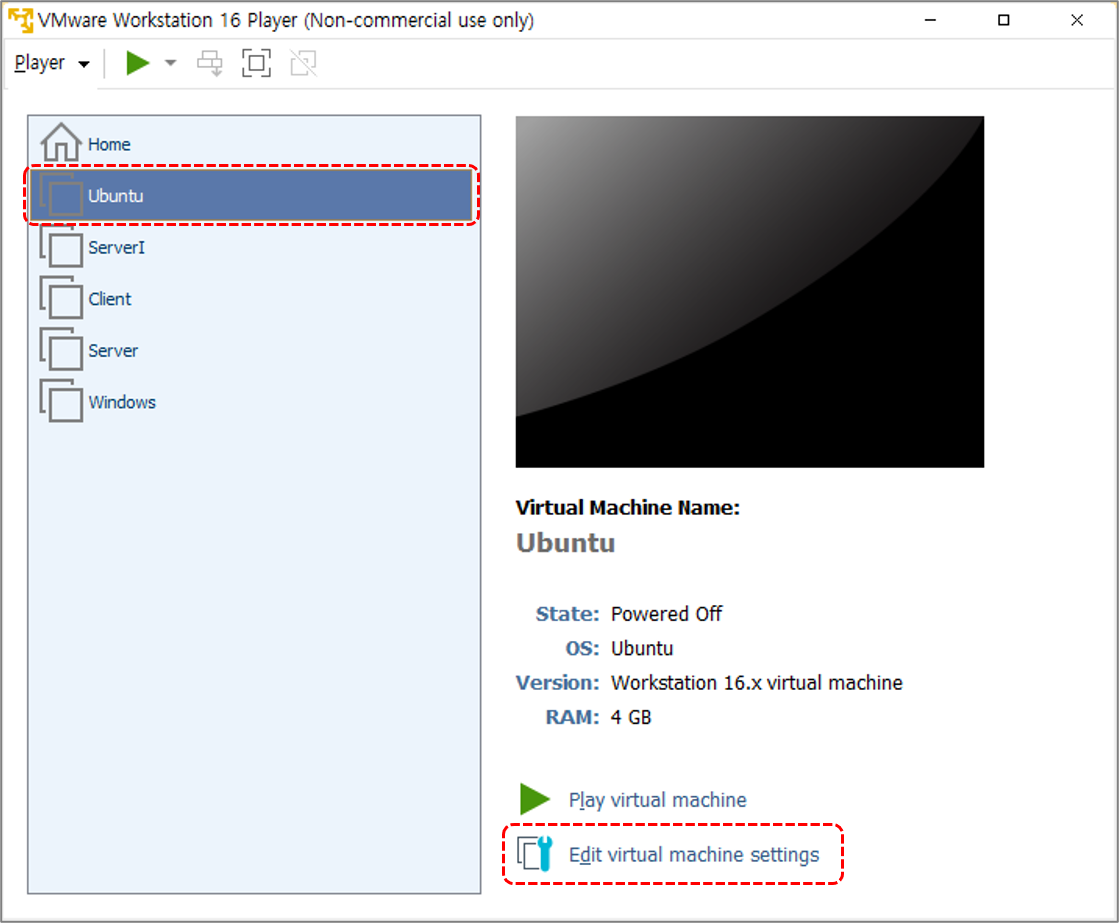 ⓐ '가상머신 설정 편집(Edit Virtual Machine Settings)'을 클릭합니다.