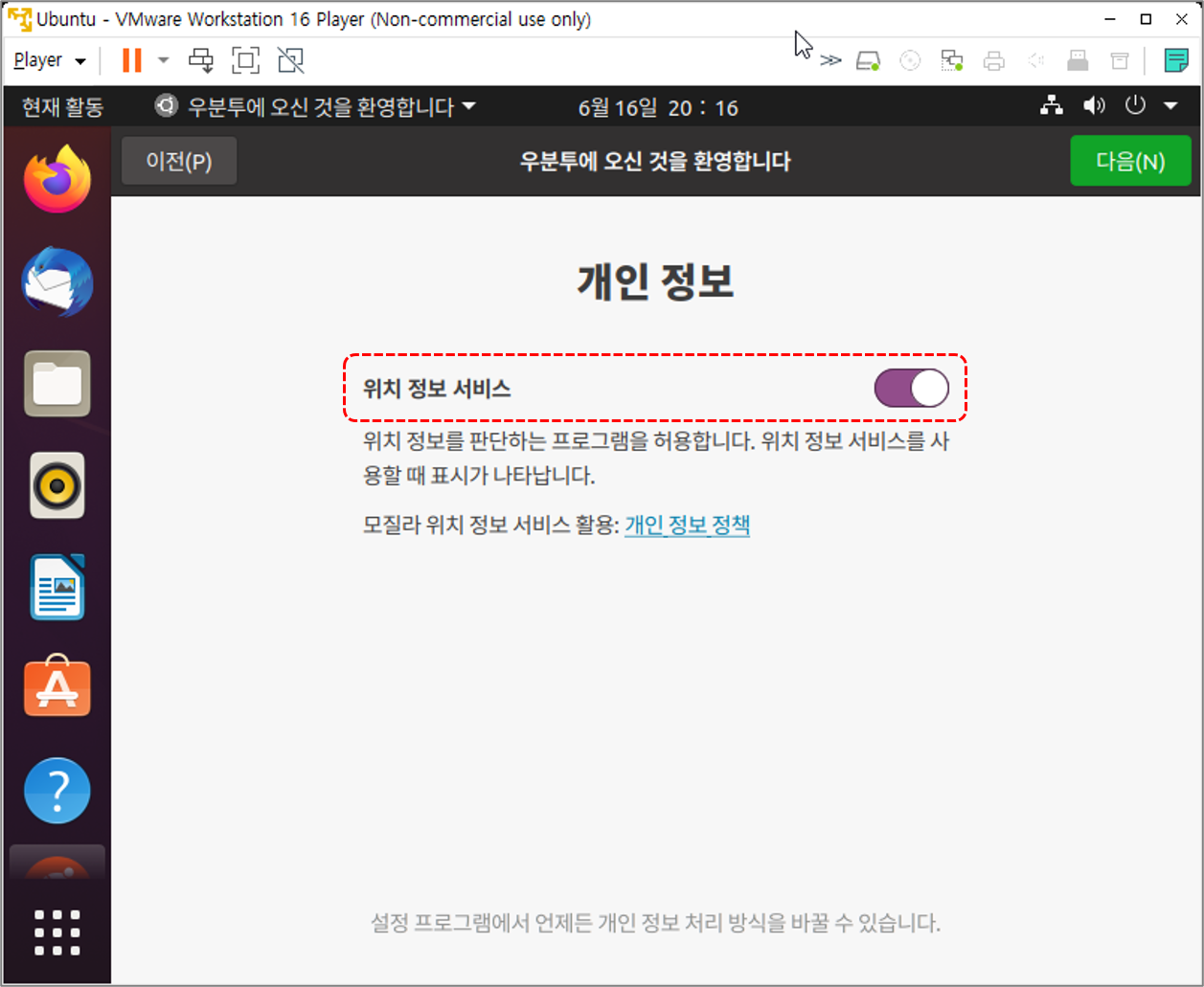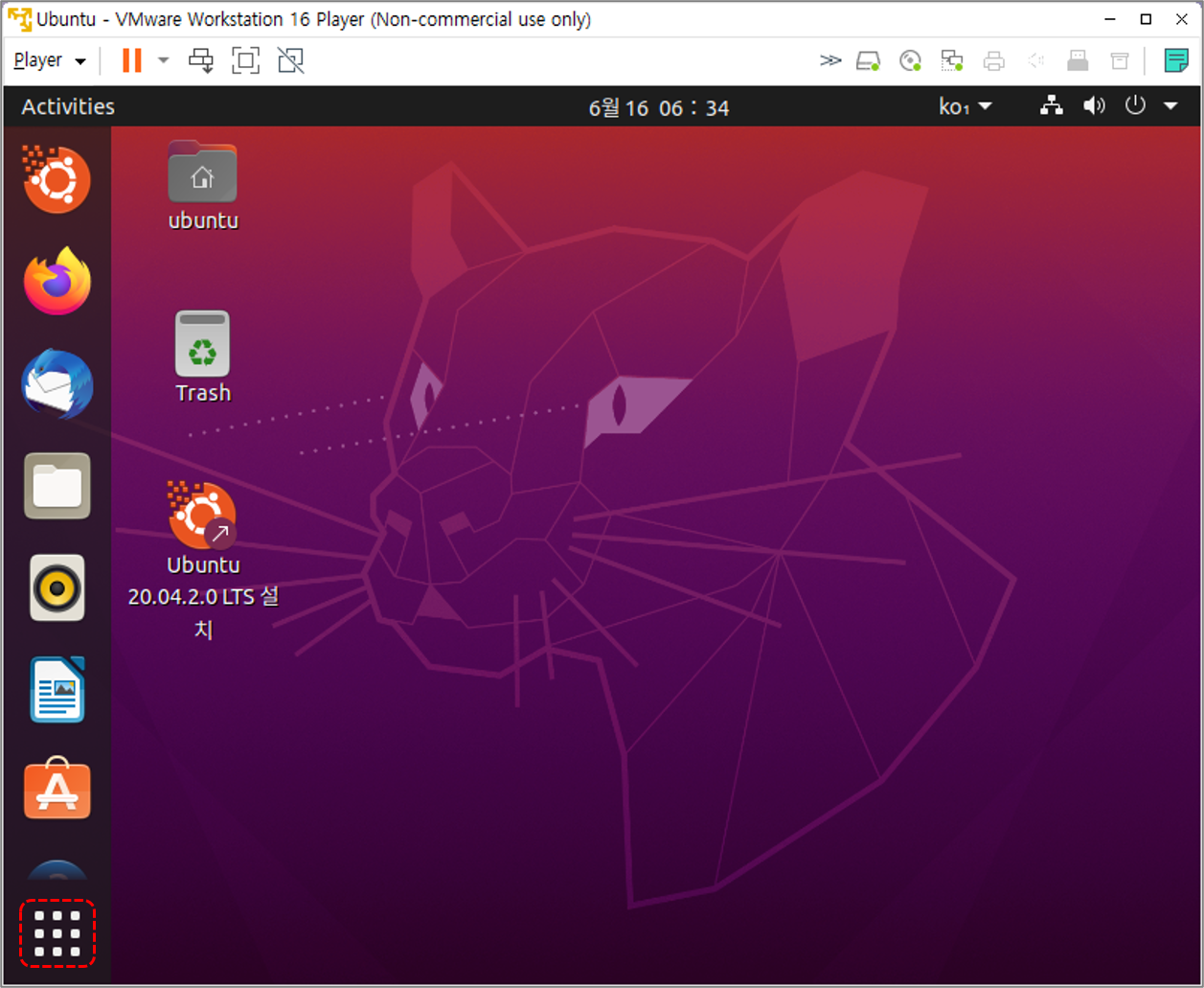 이상 'VMware'에 'Ubuntu 20.04 LTS'를 설치하는 방법에 대하여 설명드렸습니다.