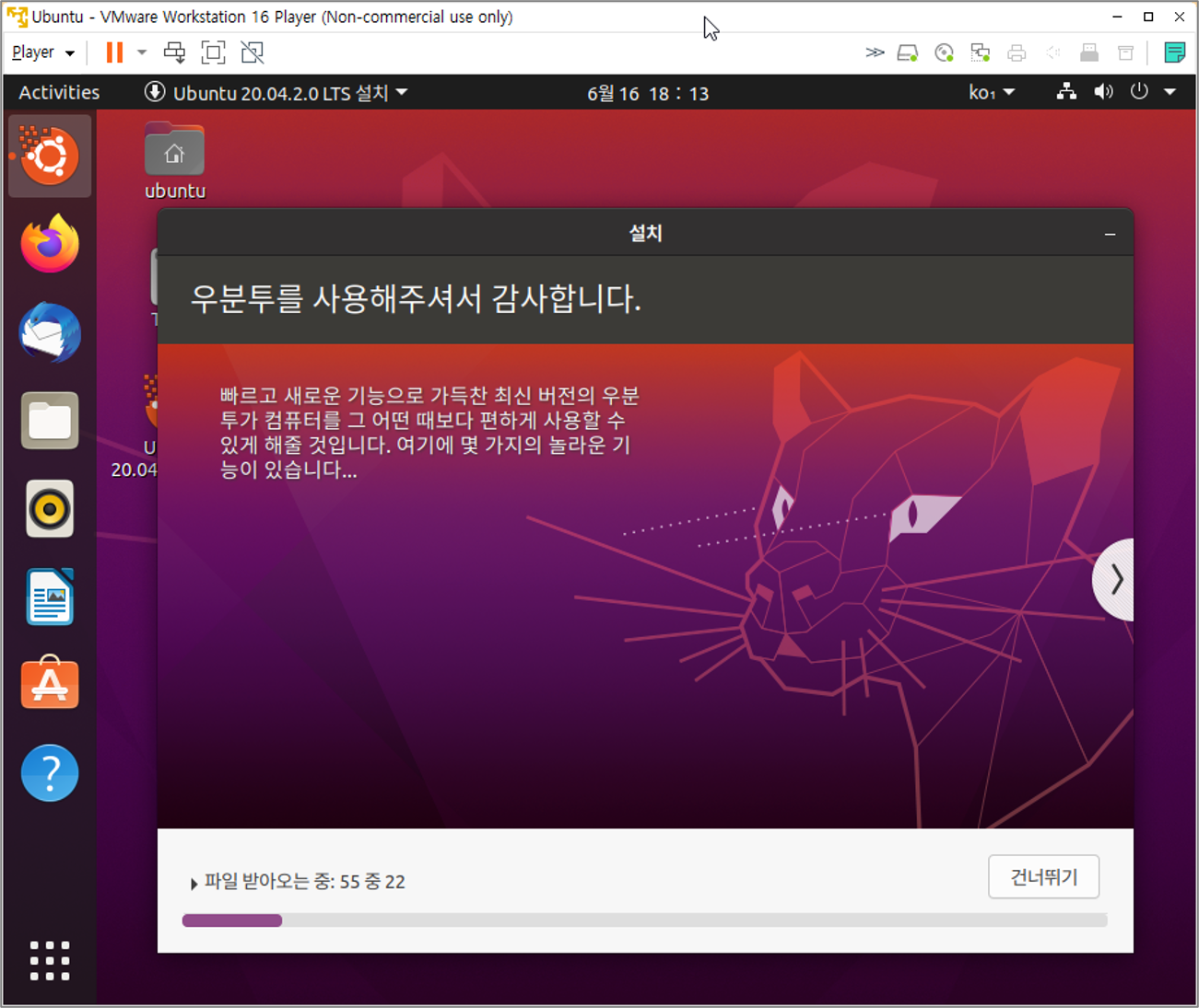 이상 'VMware'에 'Ubuntu 20.04 LTS'를 설치하는 방법에 대하여 설명드렸습니다.