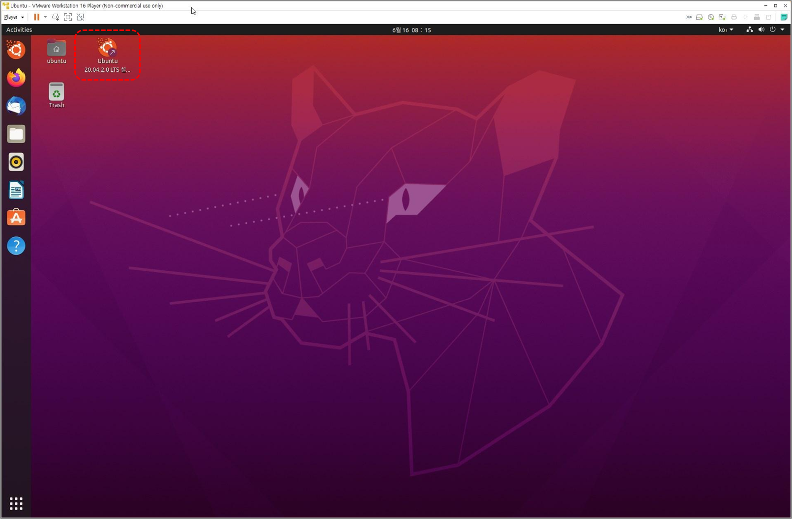 바탕화면에서 'Ubuntu 20.04 LTS' 설치 아이콘을 실행합니다.