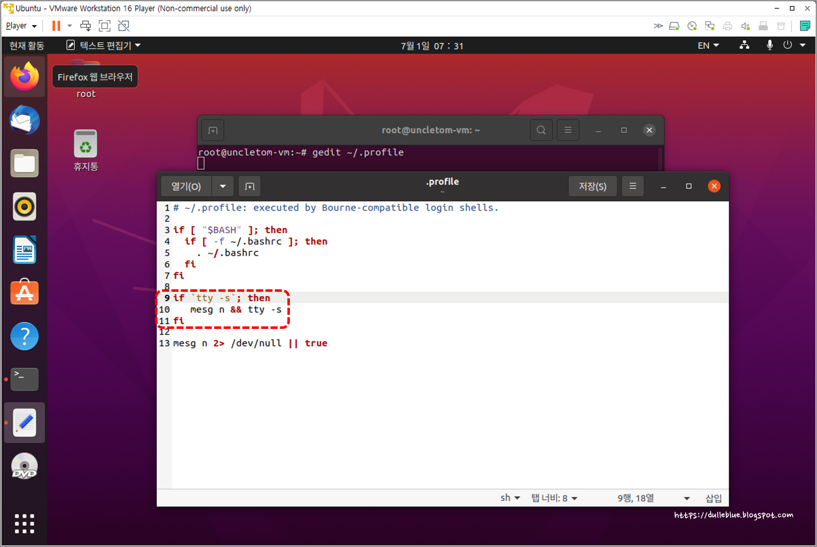 root@uncletom-vm:~# gedit ~/.profile